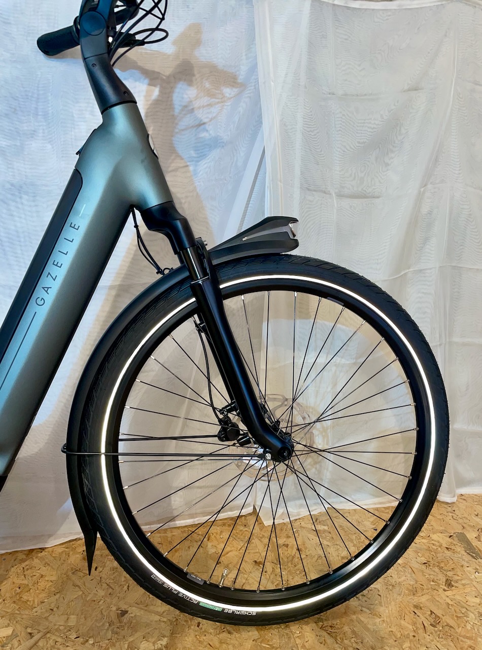 Gazelle E-Bike Arroyo C8 mit Bosch Active Line Plus Mittelmotor 50 Nm und einer Akkukapazität von 600Wh. Das E-Bike verfügt über Scheibenbremsen vorne und hinten sowie einer Rücktrittbremse. Zur weiteren Ausstattung gehören breite Komfort Reifen, Federung vorne und hinten, LED Scheinwerfer mit Tagfahrlicht, MIK HD System- Gepäckträger, toller Gel Sattel uvm.