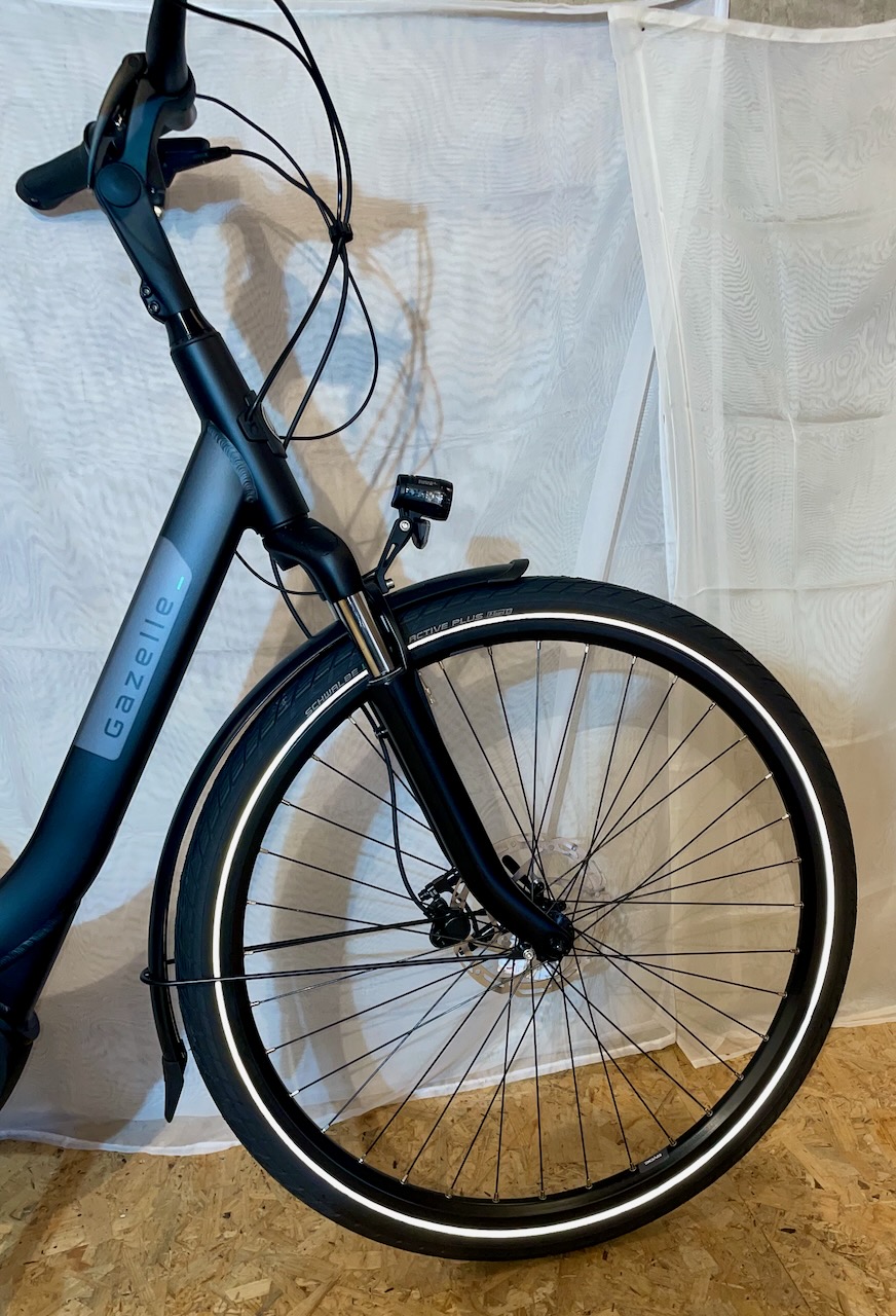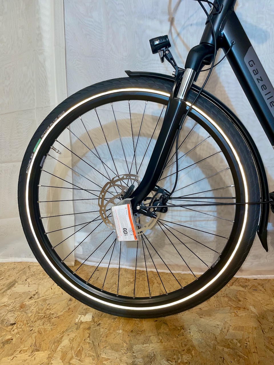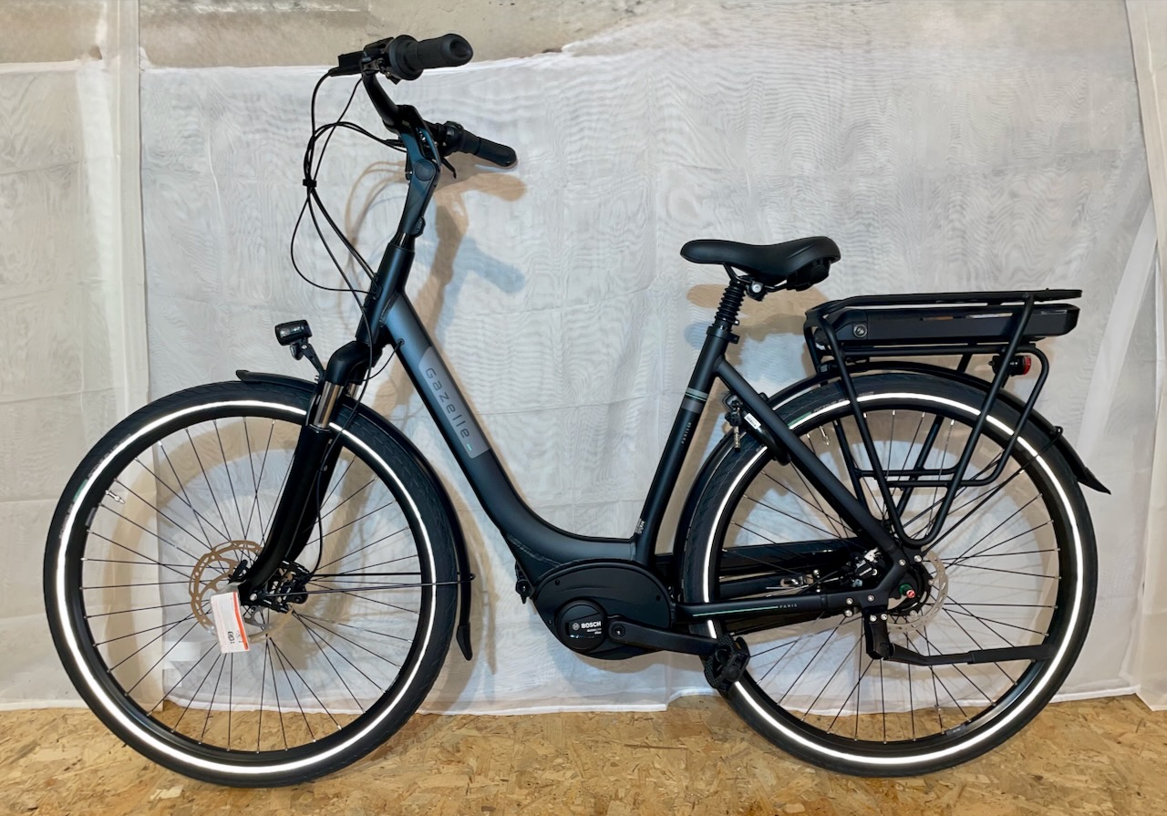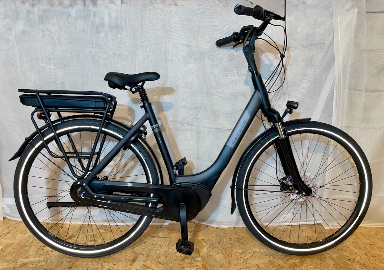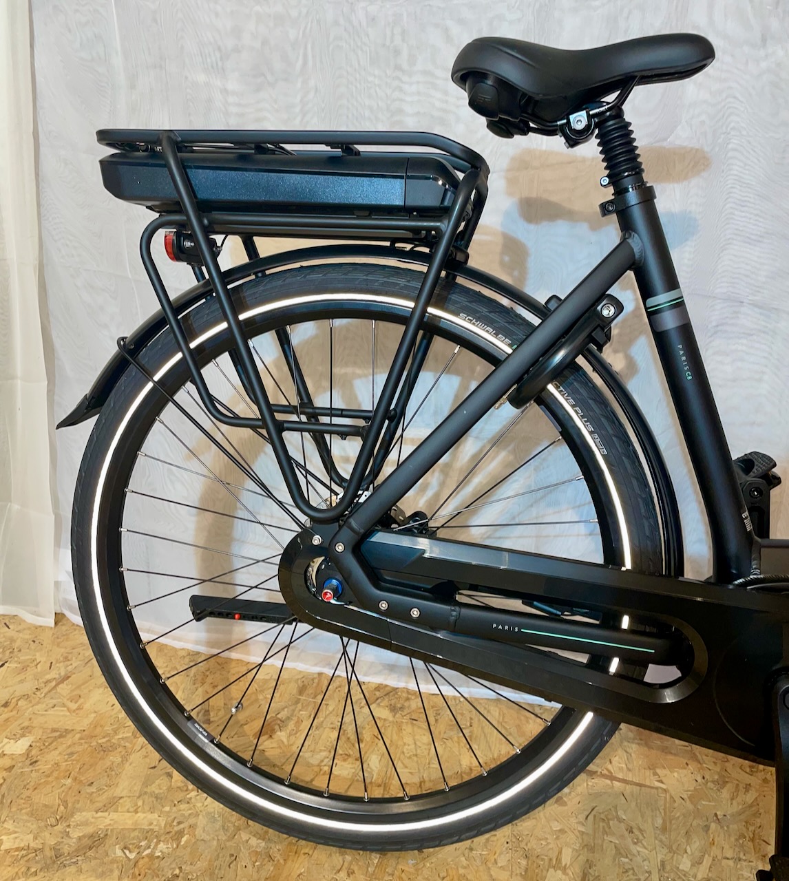 Gazelle Paris C8 in schwarz in der Rahmengröße 53cm und mit einem 500Wh Akku. Das Paris verfügt über einen Bosch Active Line Plus Motor mit 50 Nm. Zur Ausstattung gehören Scheibenbremsen vorne und hinten sowie eine Rücktrittsbremse. Komfortable 47mm Bereifung, breiter Komfort Einstieg – da Akku unter dem Gepäckträger verbaut.