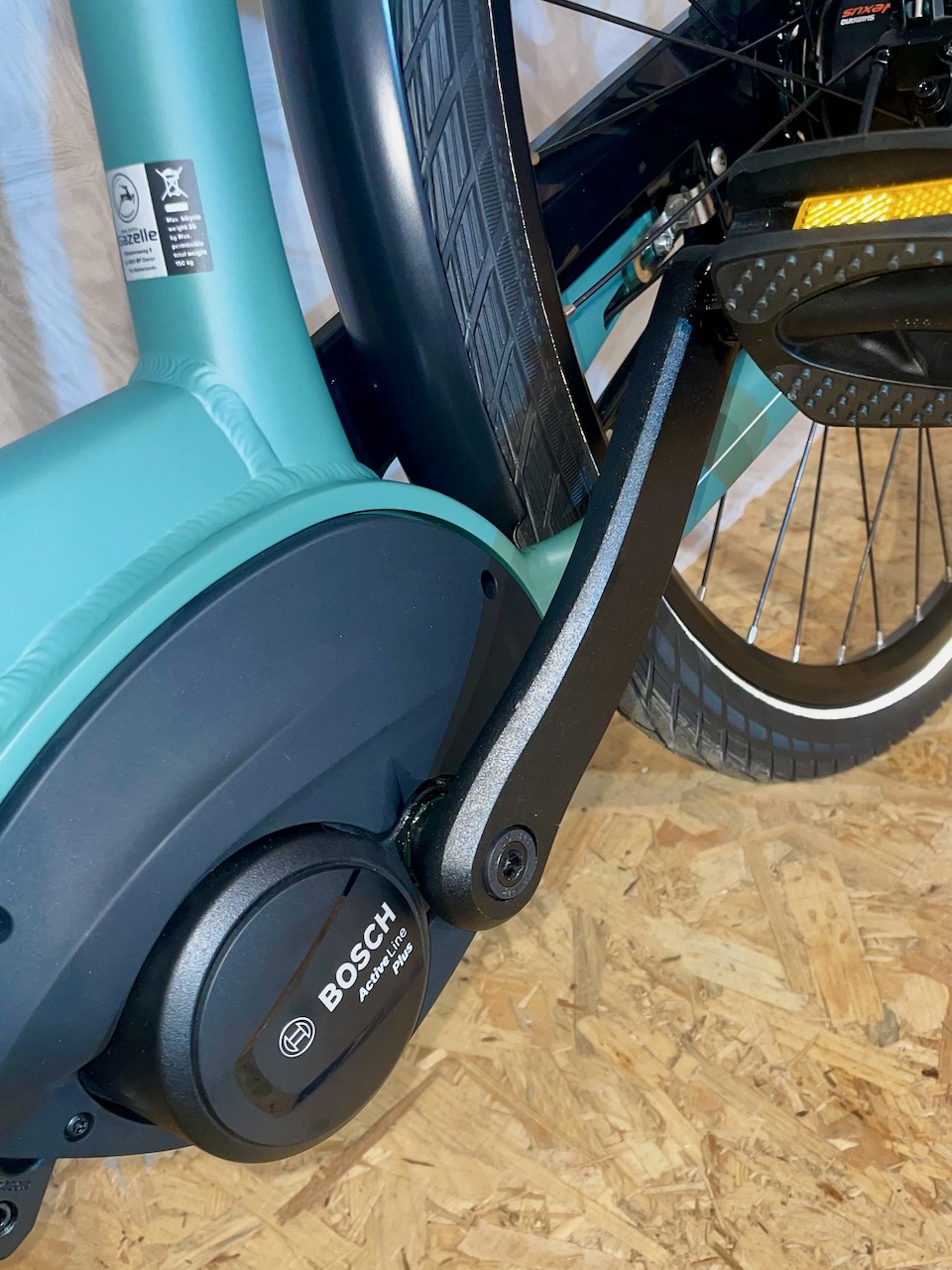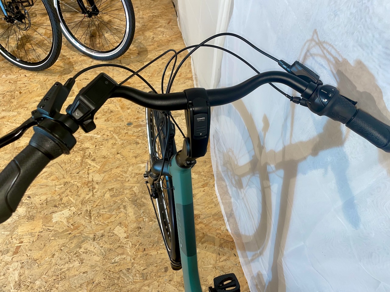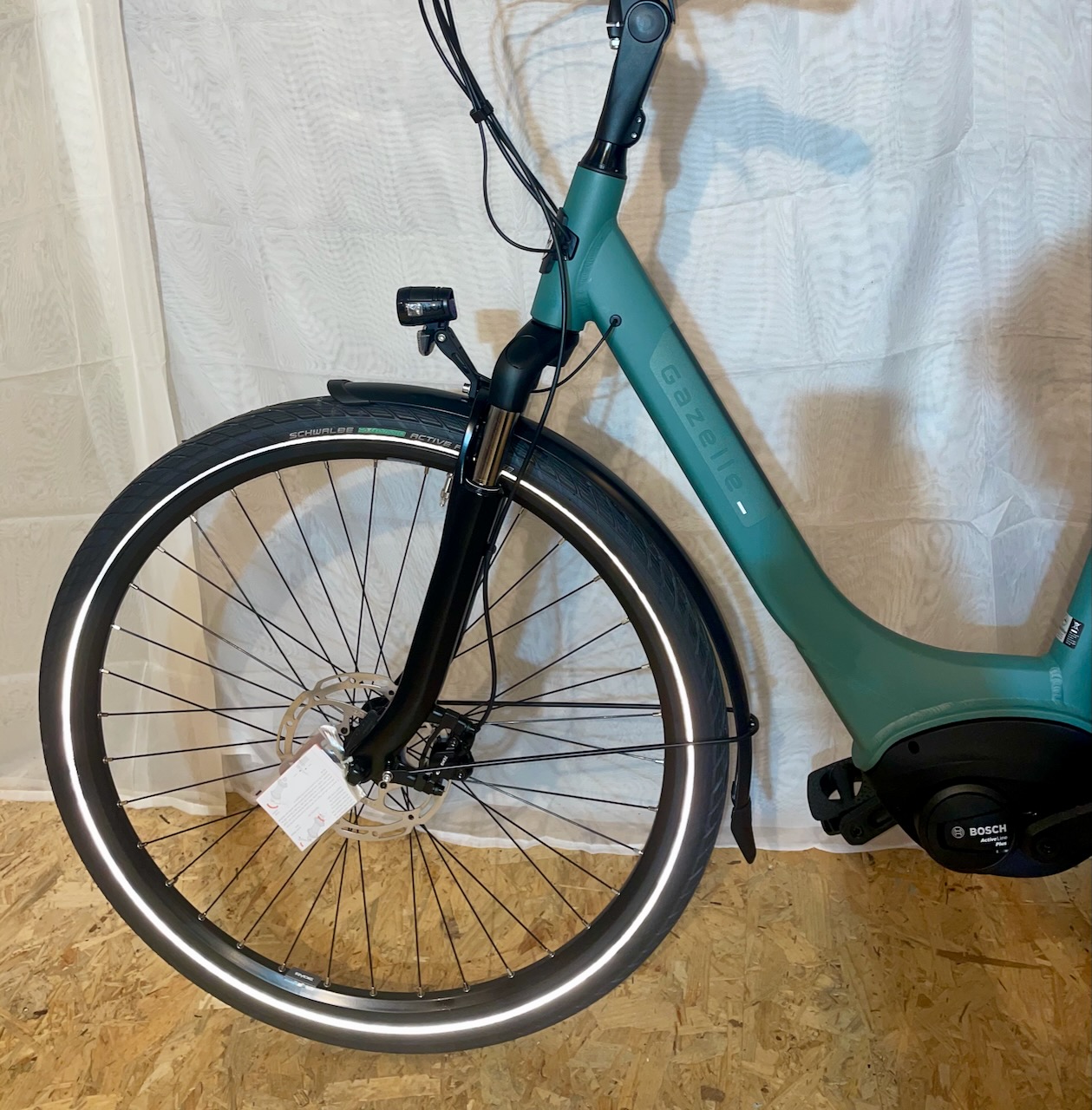 Schönes Gazelle Paris in der Farbe -Thyme Green- mit einer Rahmenhöhe von 49cm. Das Bike verfügt über einen Bosch Active Line Motor mit 50Nm und einer Akkukapazität von 400Wh.