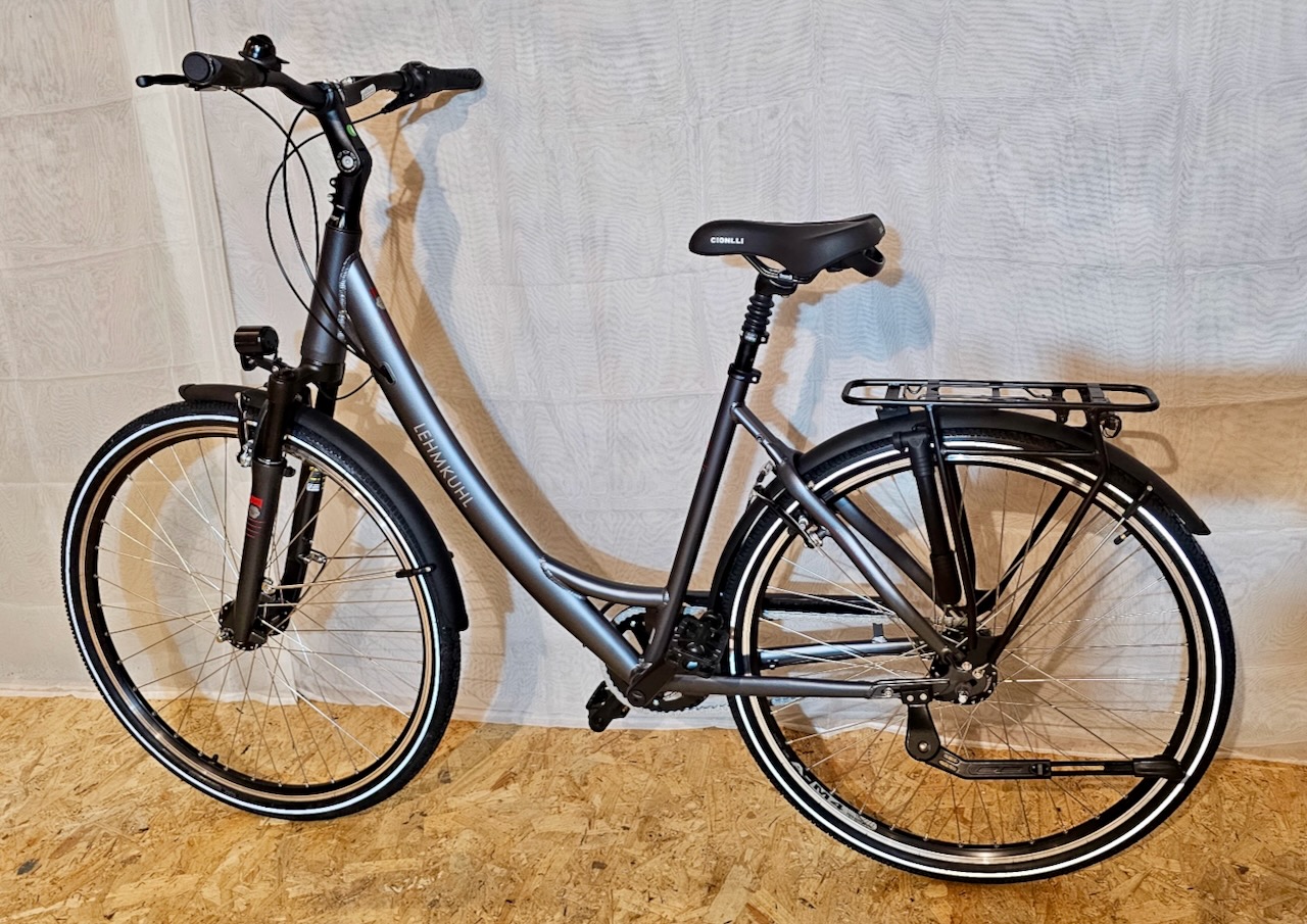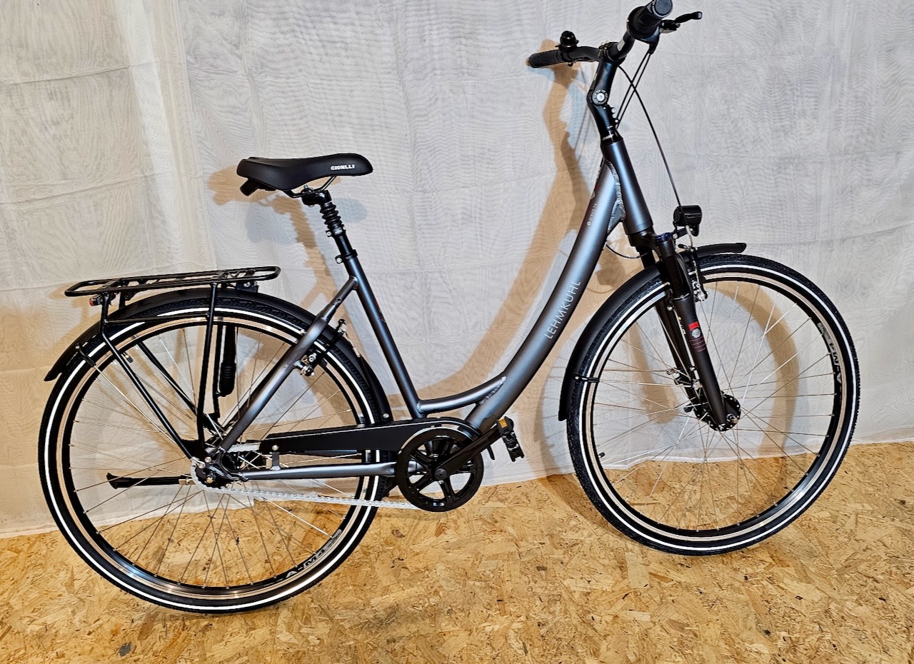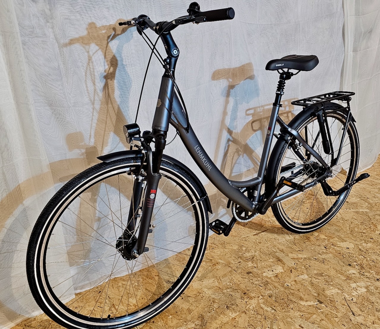 Lehmkuhl Damen City Bike in anthrazit, mit 7-Gang Shimano Nebenschaltung und Rücktrittbremse.