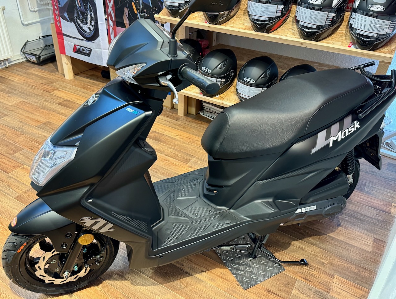 Der Mask 50 ist der Einstieg in die Sym Rollerwelt. Zuverlässig, sparsam, ordentliche Ausstattung. Der Sym Mask ist einfach ein guter Allrounder, auf Wunsch auch als 25 km/h Version erhältlich. Verschiedene Farben bestellbar.